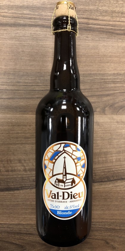 De Val-Dieu Blonde is een fris en licht bier, met een gemiddeld alcoholgehalte. Het is perfect als aperitief of als digestief, terwijl het ook perfect samengaat met een goede maaltijd. Val-Dieu Blonde droogt de mond niet uit en ontwikkelt geleidelijk een aangenaam en bitter karakter. Het bier laat zich het beste drinken wanneer goed gekoeld.