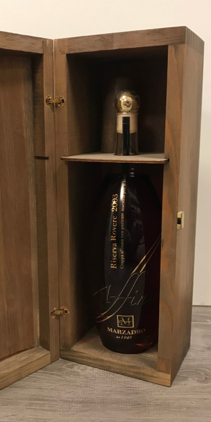 Een beperkte editie Grappa met een volle smaak en een geweldige persoonlijkheid. Het biedt een explosie van sensaties, met een complex boeket en een stevige structuur die de selectie van de Marc verbeteren, gecombineerd met de langzame en geduldige rijping van de Grappa. De smaak is rijk en boeiend, met een geweldige textuur en een lange afdronk. Vol van kracht met een volwassen, goed afgeronde smaak. Gemaakt met marc van rode druiven afkomstig uit Trentino, zoals Teroldego Rotaliano en Marzemino d'Isera, die voorzichtig worden geperst en vervolgens gedistilleerd met een Bagnomaria in een klassieke pot. De resulterende Grappa blijft 10 jaar rusten in kleine eiken vaten om een unieke en onmiskenbare mix van aroma's te bereiken. Het eikenhout dat wordt gebruikt om de vaten te bouwen (Quercus Petrae) wordt bewerkt met de "split" -methode,