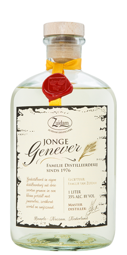 Deze fruitige en plezierig lichte genever is gedistilleerd uit een mengsel van gelijke delen Rogge, Mais en Gemoute Gerst.Na drie distillaties wordt het resulterende distillaat gedeeltelijk nog een keer gedistilleerd met de kruiden als jeneverbes, zoethout en anijszaad. Het resultaat is deze verfijnde en fruitige niet gelagerde genever.