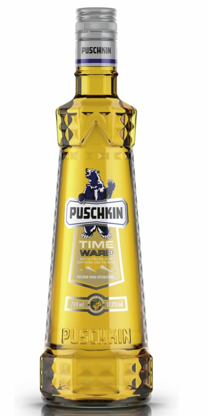 Ice-filtered Puschkin vodka flavoured met citrusfruit, cafeïne en taurine